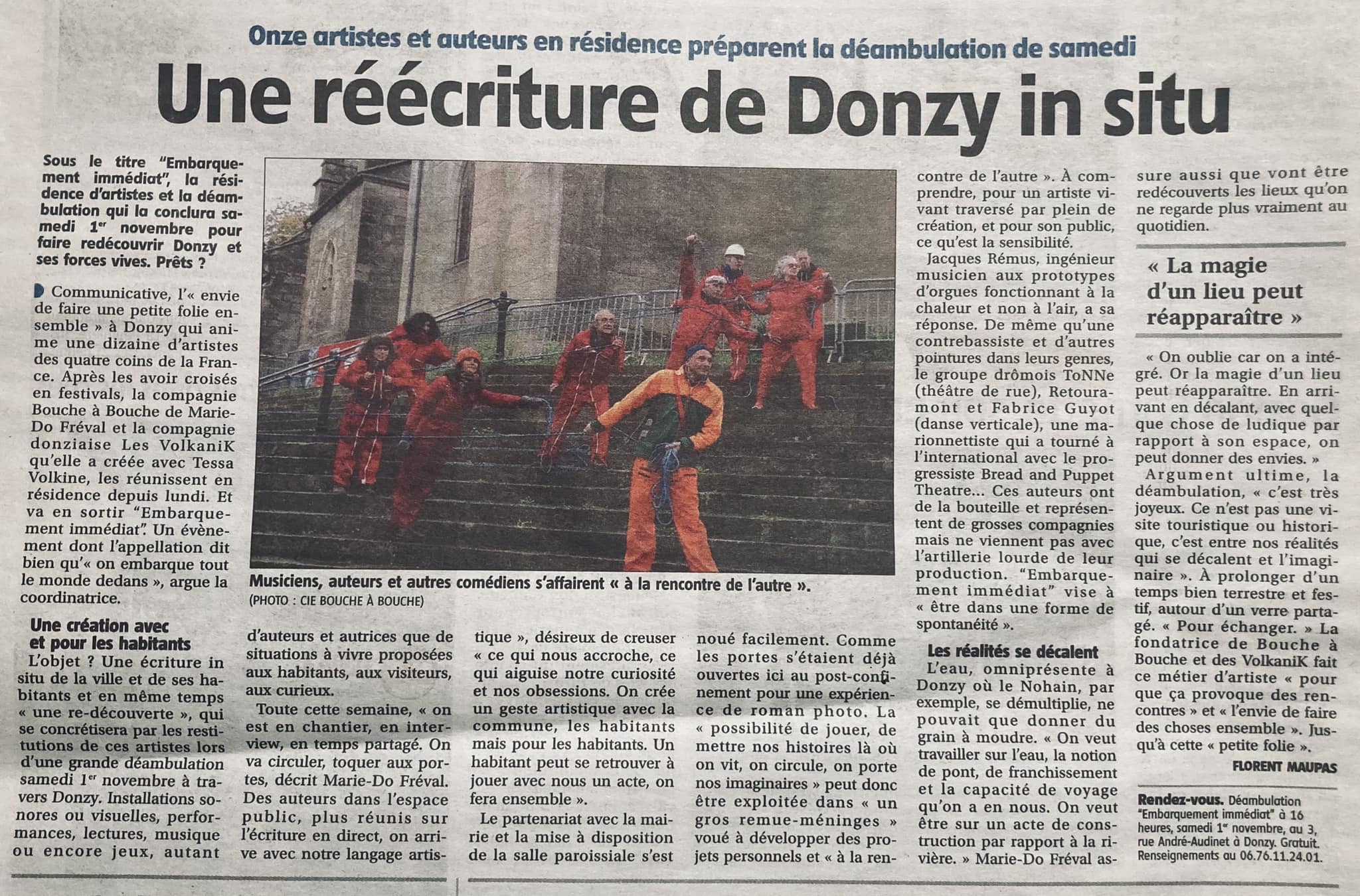 pour créer une déambulation. Chacun.e a proposé une situation à vivre aux participant.e.s, visiteur.euse.s, habitant.e.s et curieux.euses. On a pu découvrir Donzy autrement à travers des installations sonores ou visuelles, des jeux, des textes et des musiques.
